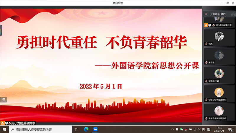 5月1日,斗球直播 以线上方式举办主题为“勇担时代重任 不负青春韶华”的新思想公开课。
