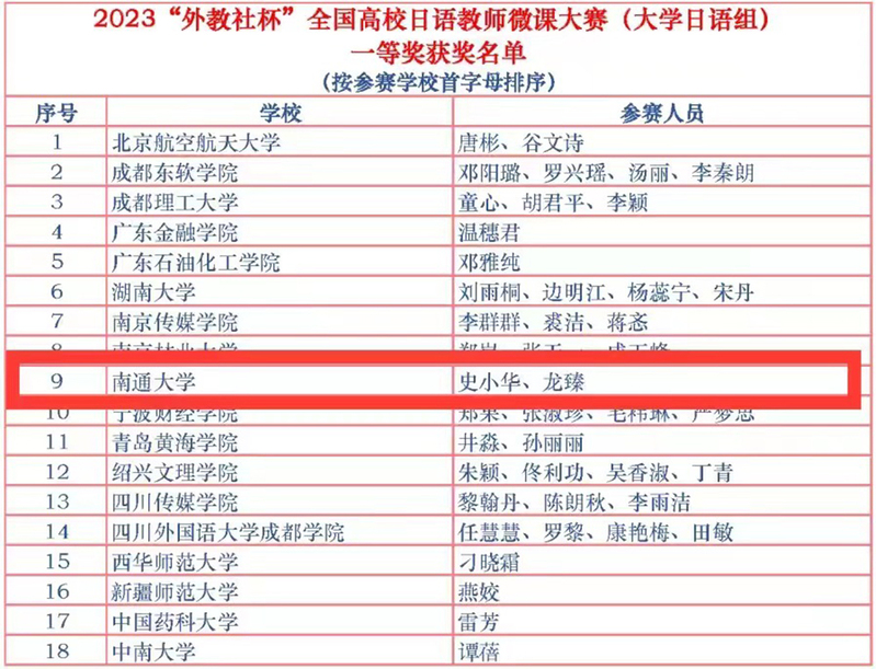 7月14日,2023“外教社杯”全国高校日语教师微课大赛评审结果公布,斗球直播 教师史小华团队的参赛作品获全国一等奖。