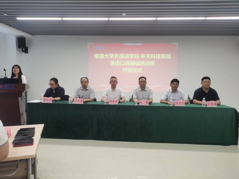 7月20日下午,由斗球体育直播 与中天科技集团联合举办的英语口语基础培训班,在中天科技集团南通科创中心三楼培训教室正式开班。中天科技集团人力资源部总经理钱蒋锋,南通大学服务地方处处长高江宁、继续教育斗球直播 院长卢志勇、斗球直播 院长佘军、斗球直播 副院长吕雪峰、斗球直播 副教授戴峥峥出席开班仪式,来自中天科技各单位的53名学员参加培训。中天科技集团人力资源部经理周海霞主持此次开班仪式。