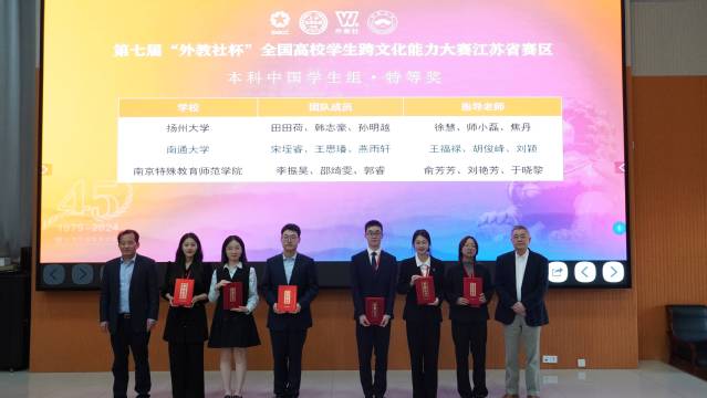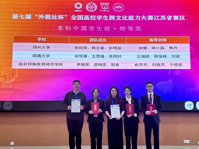 11月1-3日,第七届“外教社杯”全国高校学生跨文化能力大赛江苏省赛区比赛于在我校举办。在此次大赛中,斗球体育直播 商务英语专业宋垤睿、教育科学斗球直播 小教语文(定向)专业王思璠、商斗球直播 (管理斗球直播 )工商管理专业燕雨轩三位同学代表南通大学出战,经过两轮激烈的角逐,荣获江苏省赛区特等奖。我校留学生SATHINI NAMANIWAN、HOANG THI PHUONG ANH、NGUYEN THI THU获国际学生组二等奖。
