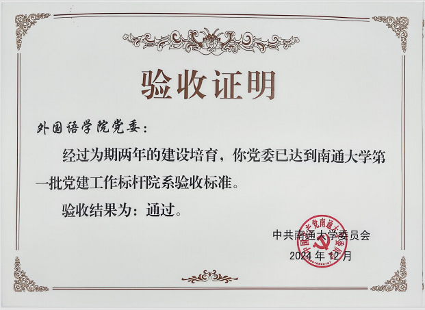 近日,斗球体育直播 党委及教工第四党支部传来喜讯——在经过为期两年的建设培育后,双双达到南通大学第一批党建工作标杆院系和样板支部验收标准,并顺利通过验收。