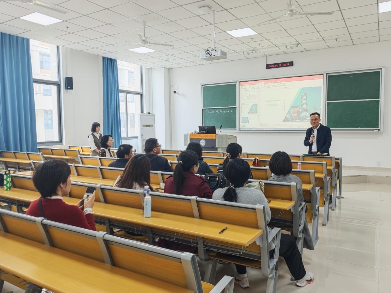 2025年4月9日下午,斗球直播 英语系举办教研磨课活动,助力青年教师金晖备战“外教社杯”全国英语教学比赛。斗球直播 院长佘军、副院长王雪玉、英语系主任陈凤华、副主任姚颖,以及来自英语系、翻译系和商务英语系的四十余位教师参加了此次活动。