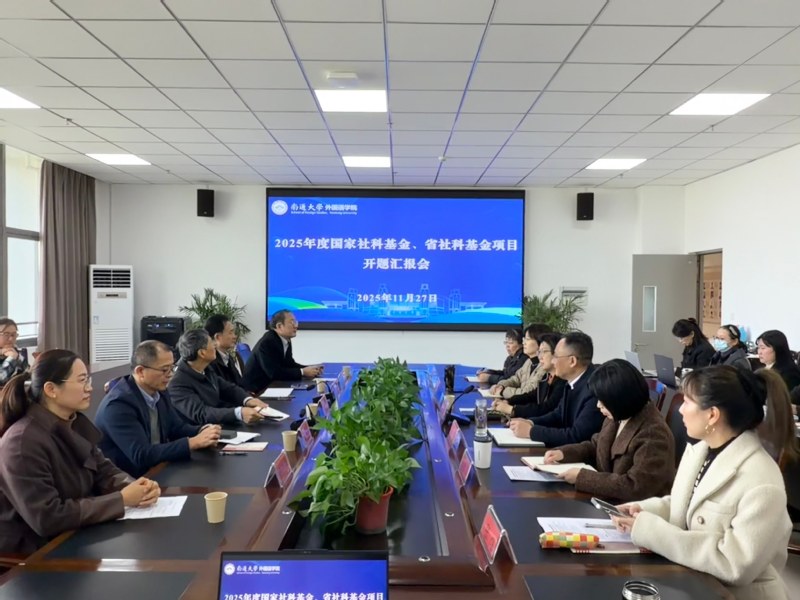 11月27日上午,斗球体育直播 举行了2025年度国家社科基金、省社科基金项目开题汇报会。会议特邀浙江大学吴笛教授、南京大学杨金才教授、广东外语外贸大学冉永平教授、南京工业大学陈世华教授担任评审专家。南通大学人文社科处副处长邹月辉、斗球直播 领导班子出席会议。汇报会由院长佘军主持。